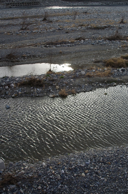 愛知川(えちがわ) 滋賀県東近江市付近 歩けばこそ見える風景が、そこにはある。 湖東コミュニティセンターで開催された、書家・伊藤潤一さんのトークライブを聴きに訪れた帰り、八日市駅へ向かう橋の上から眺めた川が奇麗だったのでシャッターを押してみました。夕陽に照らされた川面と、風が造り出す波紋のシンフォニー。車に乗っていたらこの風景には気づくことができなかったことでしょう。 2014/03/02 写真 愛知川 京都 三重県上野森林公園 御在所 吉野山